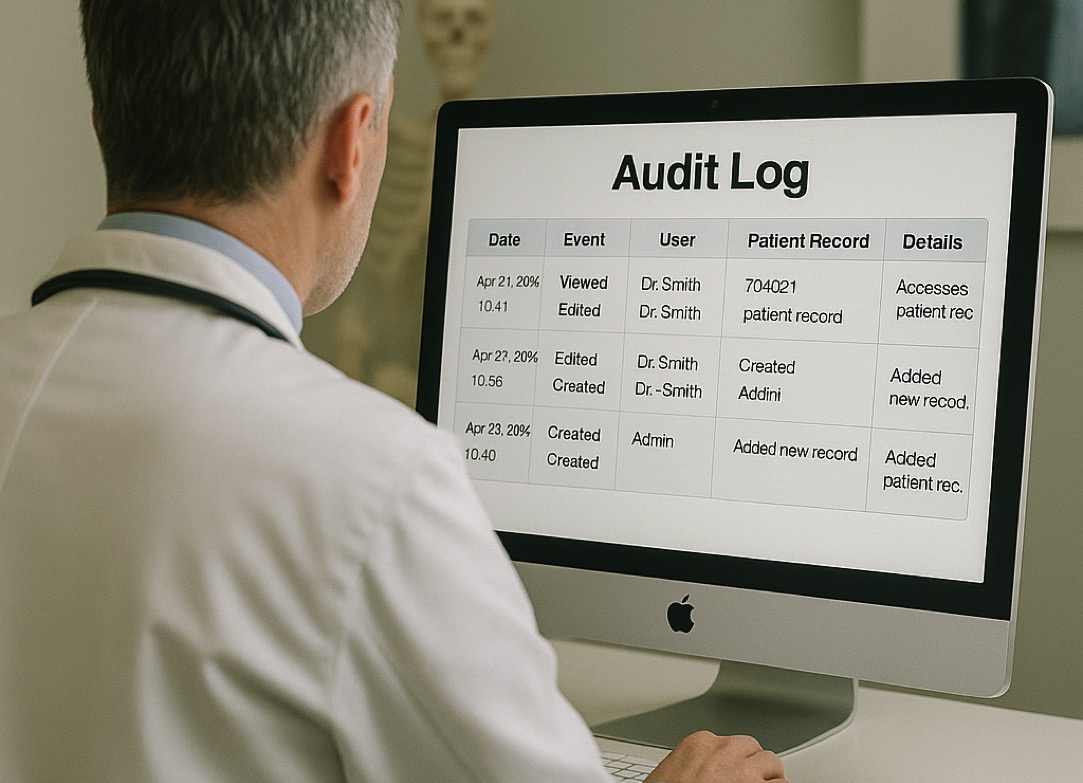 Each access to a patient record is stored along with information about who viewed which record and when. In case of modifications, the system logs exactly which fields were changed and allows comparison between old and new values. This data is stored in a separate database accessible only to administrators, enabling detailed filtering by event type, record, time, or user.